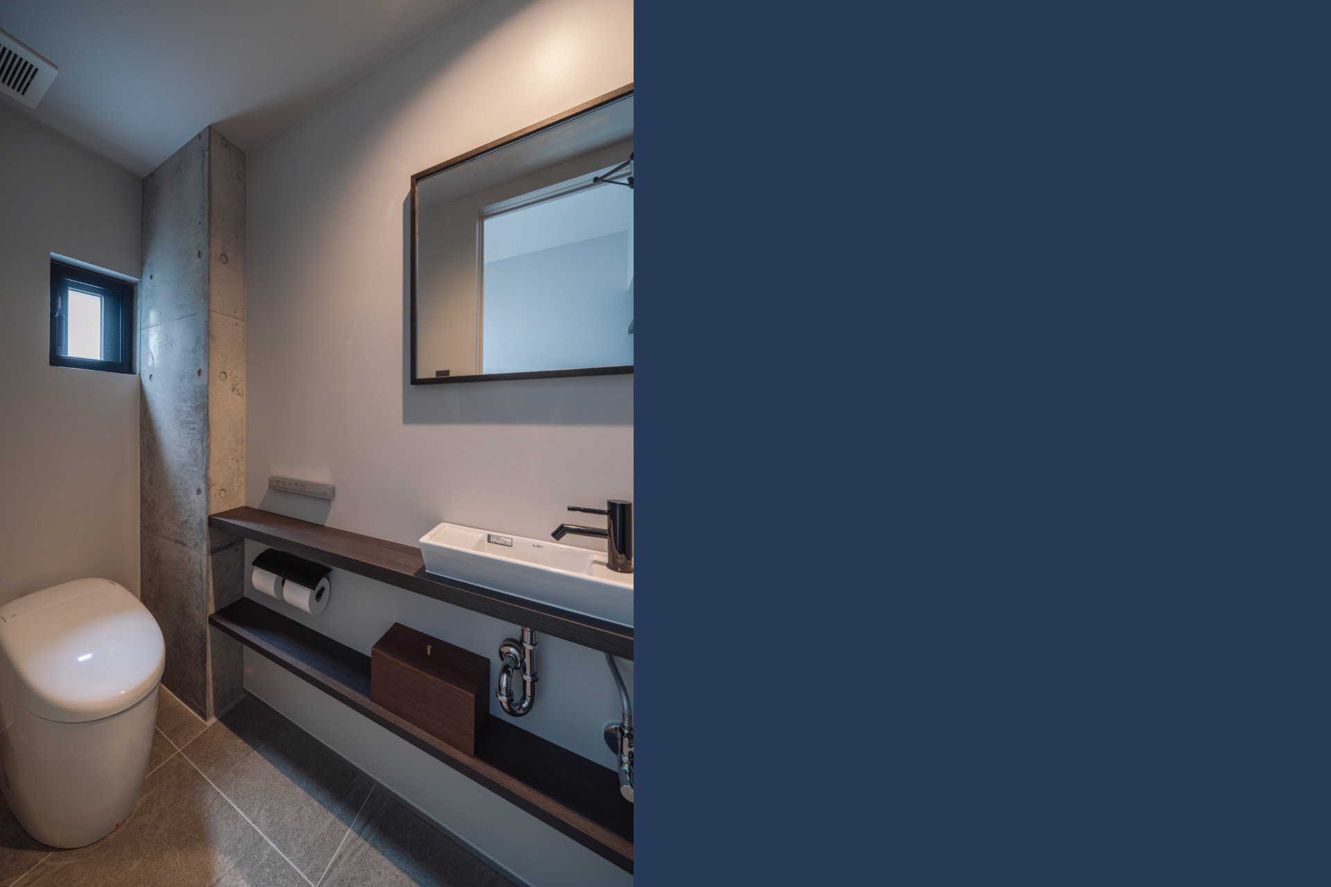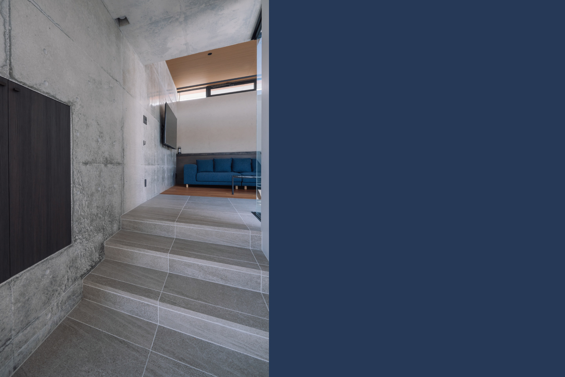 コンクリートと木の素材が織りなす陰影が、時間とともに変化していく。