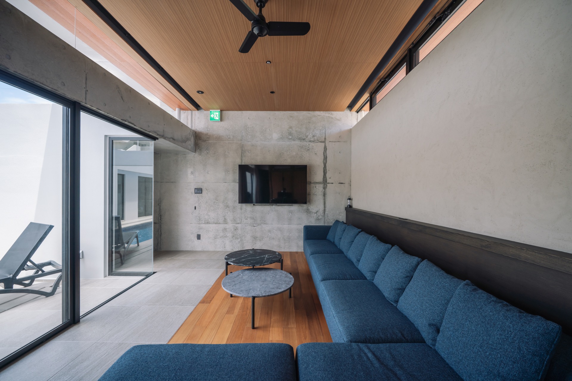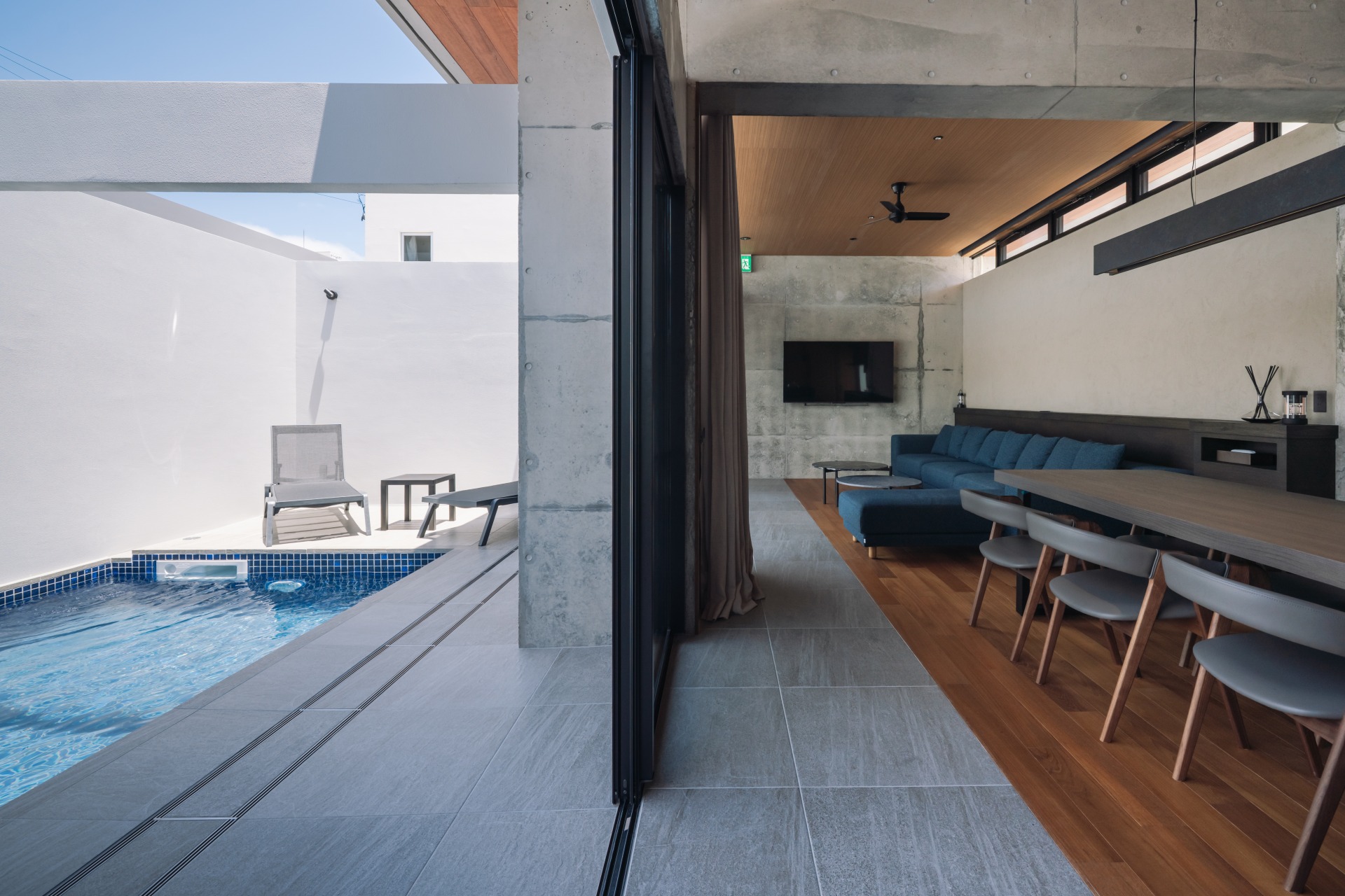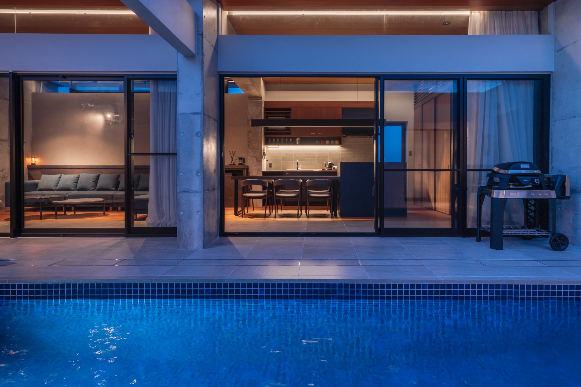 プールとテラスが隣接するリビングルーム