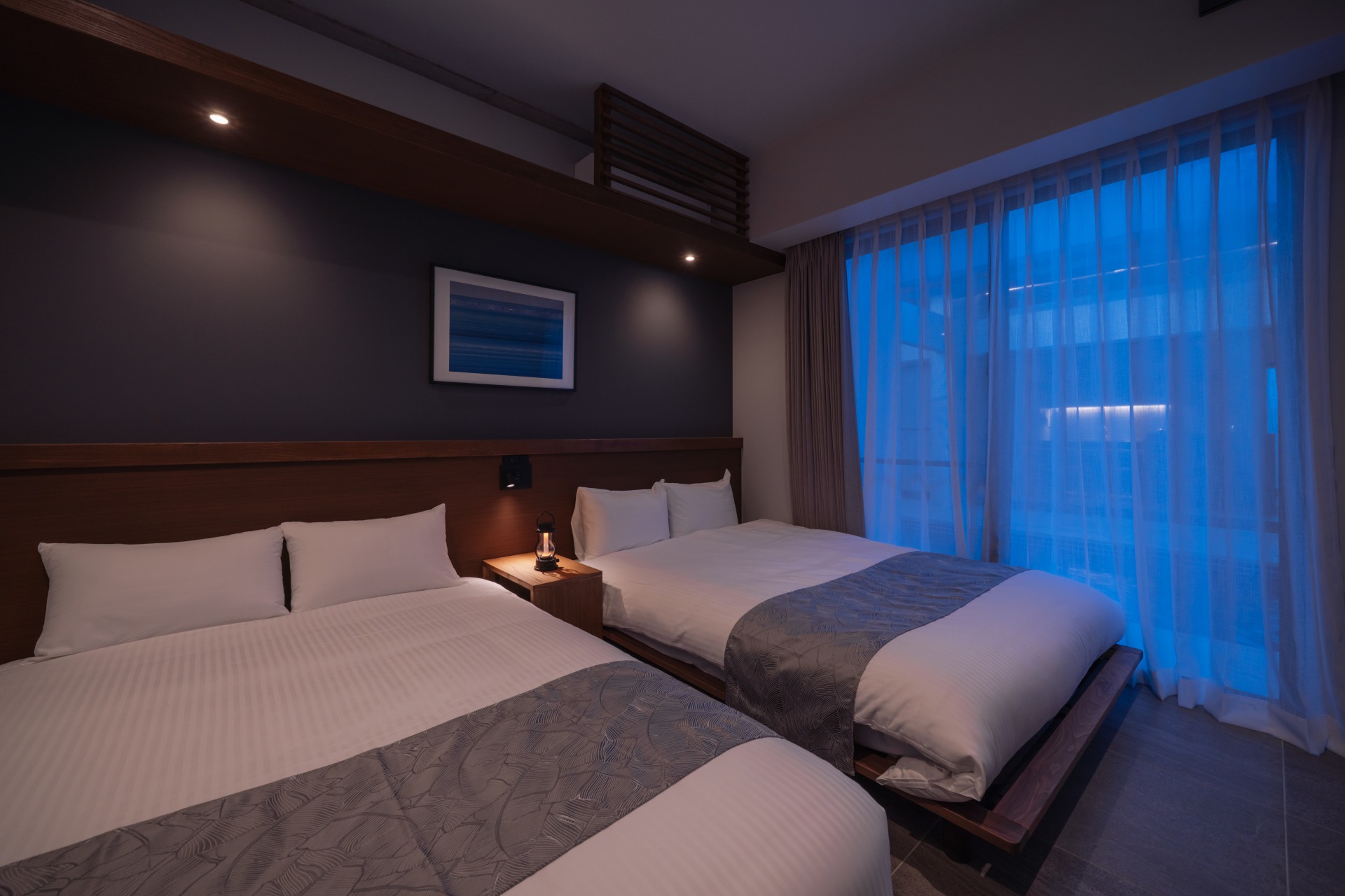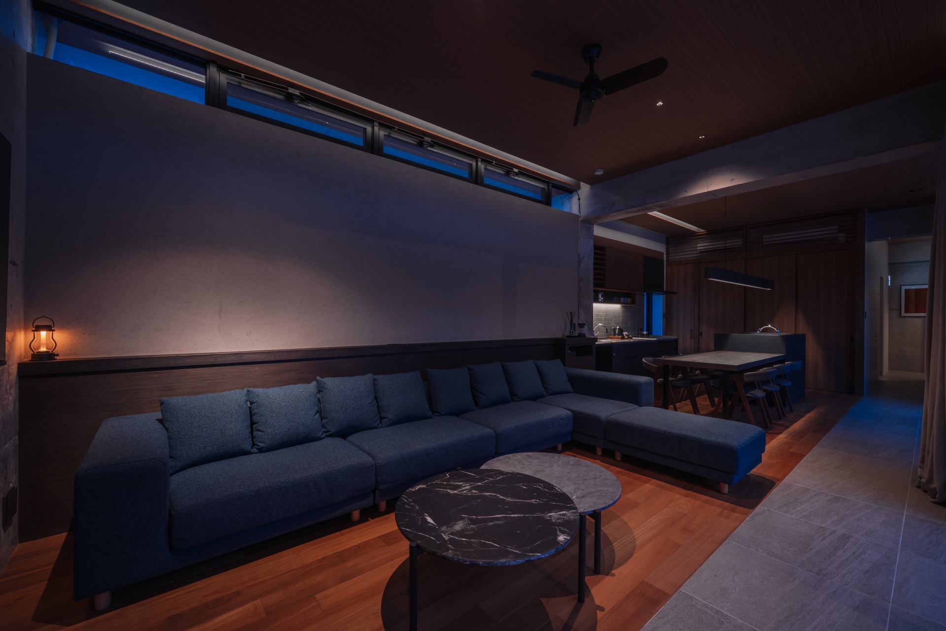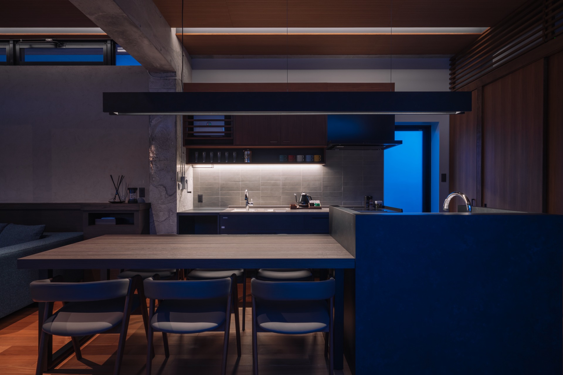 間接照明の効果で、陰影のあるリラックス空間