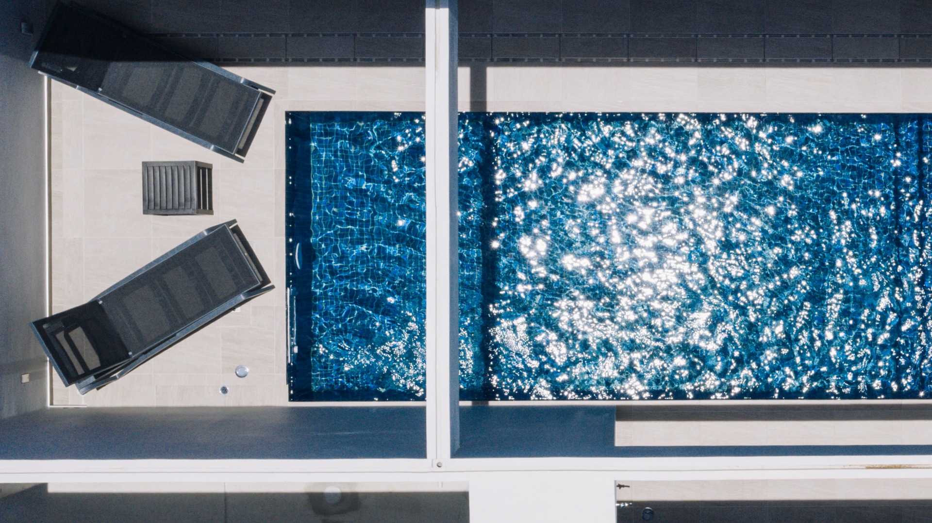 プールサイドに配しているため、廊下・テラスと同様のタイル貼りとした